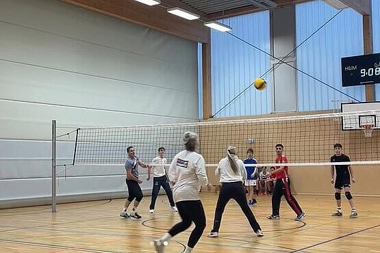 Die Klasse 10 hat ein kleines Volleyballturnier veranstaltet, Schüler gegen Lehrer. Leider - für die Lehrer - gewannen die Schüler 4 Sätze zu 1!