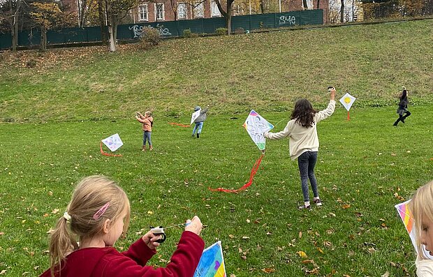 Die Kinder haben ihre Drachen eigenhändig gestaltet und sie stolz in den Himmel steigen lassen - ein einzigartiger Start in unser Ferienabenteuer!