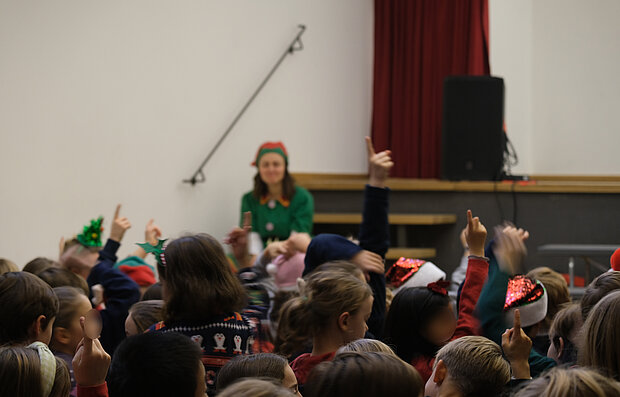 Und weil heute Freaky Friday war, tauchten die Christmas Sweaters, der glitzernde Kopfschmuck und ein besonderes Lehrerinnen-Kostüme die Schule zusätzlich in festliche Stimmung.