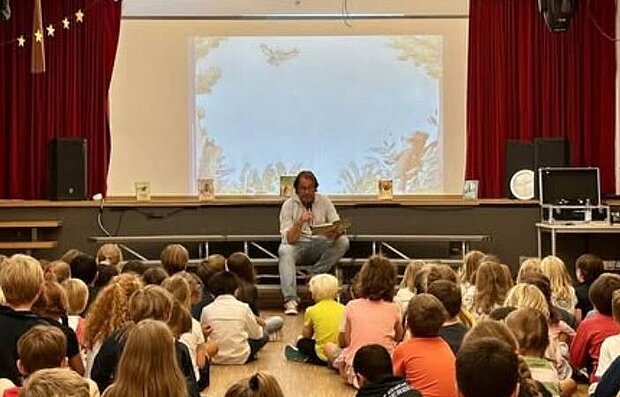 Er sprach mit den Kindern über seine Arbeit als Autor, beantwortete viele Fragen und signierte Bücher und Fotos.