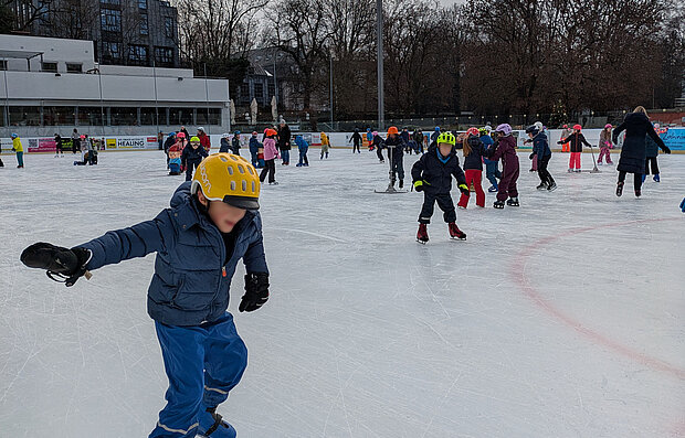 Statt flüssigem Wasser durften unsere zweite, dritte und vierte Klasse ihr Können auf dem Eis unter Beweis stellen.