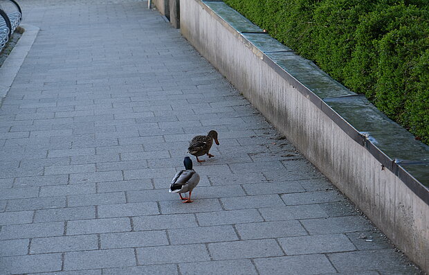 Nachdem der Abholungs-Trubel vorüber war, hat sich ein Entenpaar zum White Gate getraut und wollte glatt das Schulgelände erkunden. Leider konnten wir sie nicht hereinlassen, aber es war auf jeden Fall ein wunderbarer Anblick.