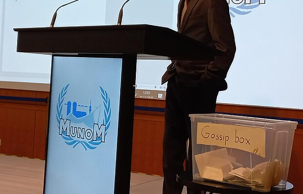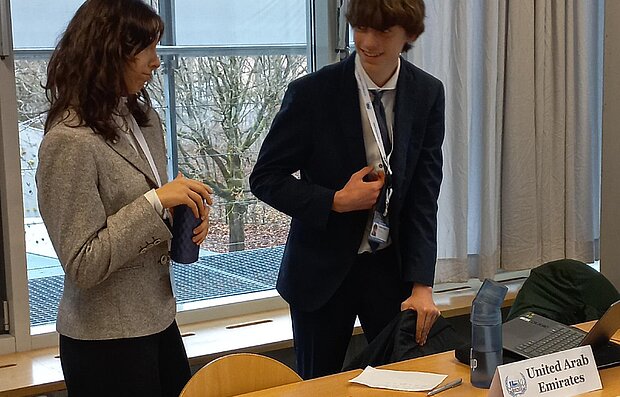 Die MUN-Delegation der 10. Klasse von Phorms ergreift das Wort: