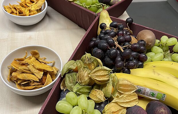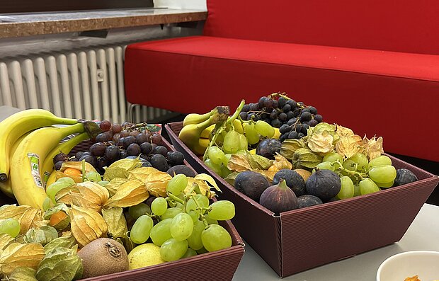 Da die Gesundheit unserer Lehrkräfte uns sehr am Herzen liegt, kommen passend zur grauen Jahreszeit bunte Obstkörbe in die Lehrerzimmer. Feigen, Physalis, Äpfel und Trauben sind süß, lecker und voller Vitamin C.