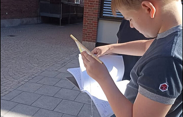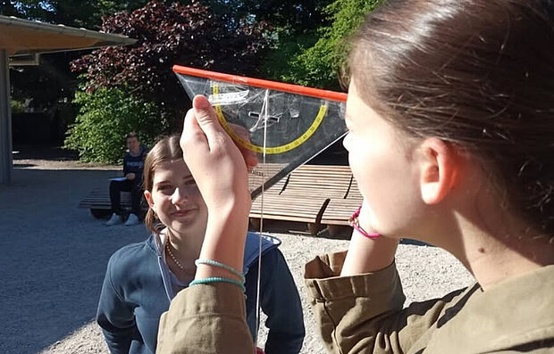 Kurzerhand machten sich die Schülerinnen und Schüler daran, diese Wissenslücken zu schließen. Ausgestattet mit selbstgebauten Klinometern zogen sie los, um Höhen zu messen, wo immer es möglich war. Mit einfacher, aber durchdachter Technik – bestehend aus einer Röhre, einem Geodreieck und einem Pendel – entstanden praktische Messgeräte, die sich im Einsatz als überraschend präzise erwiesen.