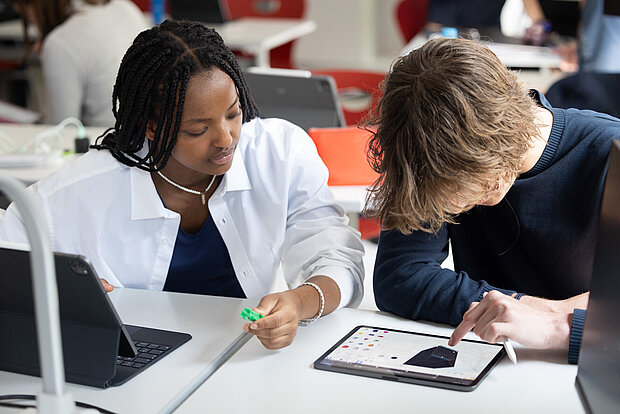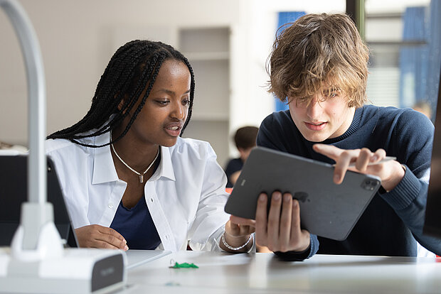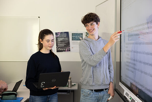 Unsere moderne Ausstattung inklusive SMART-Displays in allen Unterrichtsräumen und campusweitem schnellen Internet ermöglicht es, digitale Medien überall dort gezielt einzusetzen, wo sie echten Mehrwert bieten, auch im Umgang mit künstlicher Intelligenz. Trotzdem halten wir, wo es Sinn macht, auch an traditionellen Medien wie Lehrbüchern fest, da Schülerinnen und Schüler aus diesen erwiesenermaßen besser Informationen aufnehmen und speichern und die digitalen Pendants in den meisten Fällen noch kaum Mehrwert in Bezug auf verlinkte Medien bieten.