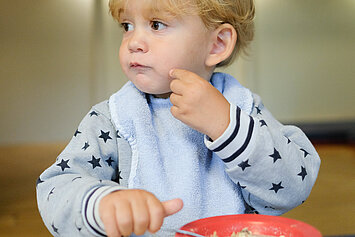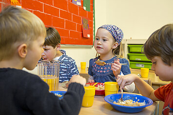 In der Krippe frühstücken die Kinder gemeinsam mit dem pädagogischen Team.
