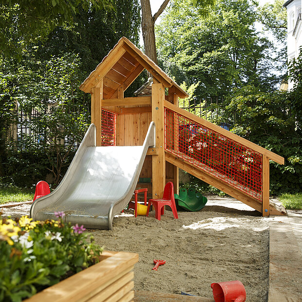 Die großzügigen Außenflächen rund um unseren Kindergarten bieten den Kindern viel Raum zum Spielen, Entdecken und Austoben. Für unsere Krippenkinder steht ein eigener, geschützter Spielbereich zur Verfügung, in dem sie ungestört ihrer Spielfreude nachgehen können. Unser Außengelände bietet auch schattige Plätze als Rückzugsorte an warmen Tagen. Der nahegelegene Bürgermeisterpark sowie der Englische Garten laden zusätzlich zu regelmäßigen Ausflügen ein und bieten ideale Möglichkeiten, sich an der frischen Luft zu bewegen und die Natur zu erleben.