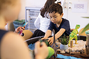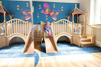 Mit viel Liebe, Aufmerksamkeit und Verlässlichkeit betreuen und begleiten wir Ihr Kind - jeden Tag auf Neue. Wir schaffen Geborgenheit und unterstützen seine Entwicklung durch pädagogisch wertvolle Angebote und vertraute Routinen – zweisprachig, auf Deutsch und Englisch, eingebettet in einen strukturierten Kindergartenalltag mit einem abwechslungsreichen Programm. Dabei legen wir großen Wert auf eine enge und vertrauensvolle Zusammenarbeit mit Ihnen als Eltern. Wir halten Sie regelmäßig über die Entwicklung Ihres Kindes auf dem Laufenden – offen, transparent und partnerschaftlich. Denn nur gemeinsam können wir Ihr Kind stärken, fördern und sicher durch seine Kindergartenzeit begleiten.