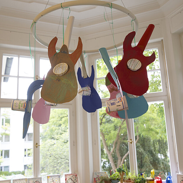 Auch das Musizieren hat in unserem Kindergarten einen festen Platz. Eine qualifizierte Musiklehrkraft kommt jede Woche ins Haus und gestaltet musikalische Angebote für alle Altersgruppen. Mit viel Freude und Fachkompetenz bringt sie den Kindern die Welt der Musik auf vielfältige und altersgerechte Weise näher, sei es durch gemeinsames Singen, Instrumente ausprobieren oder rhythmische Bewegung.