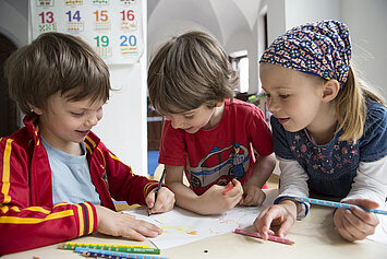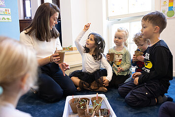 Beim Vermitteln von Wissen und beim gemeinsamen Entdecken der Welt orientieren wir uns an der Lebenswirklichkeit der Kinder. An Themen, die sie interessieren und mit denen sie sich identifizieren können. So schaffen wir eine Lernumgebung, in der nachhaltige Lernerfolge möglich werden. Dabei greifen wir auch altersgerechte Inhalte aus Naturwissenschaft und Technik auf: Warum fliegt ein Flugzeug? Wie entsteht ein Regenbogen? Durch forschendes Lernen, Experimente und kindgerechte Erklärungen fördern wir Neugier, Denkfreude und ein erstes Verständnis für naturwissenschaftlich-technische Zusammenhänge.