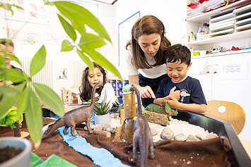 Die ersten Lebensjahre sind geprägt von Entdeckungsfreude, Neugier und rasanter Entwicklung. Unser pädagogischer Ansatz setzt genau hier an: Wir begleiten die Kinder liebevoll und fördern sie spielerisch in allen wichtigen Entwicklungsbereichen. Kreative Lernimpulse, gemeinsames Erleben und individuelle Unterstützung tragen dazu bei, dass sie Schritt für Schritt grundlegende Fähigkeiten, Selbstvertrauen und Freude am Lernen entwickeln. So legen wir den Grundstein dafür, dass sie später gestärkt, sicher und mit Begeisterung in das Schulleben starten. All dies geschieht in einem bilingualen Umfeld, in dem die Kinder immersiv sowohl die deutsche als auch die englische Sprache entdecken.